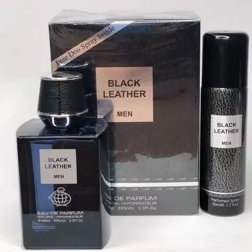عطر ادکلن مردانه فراگرنس ورد مدل بلک لیدر Black Leather حجم 100 میلی لیتر به همراه اسپری