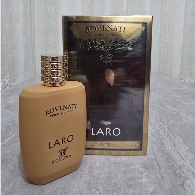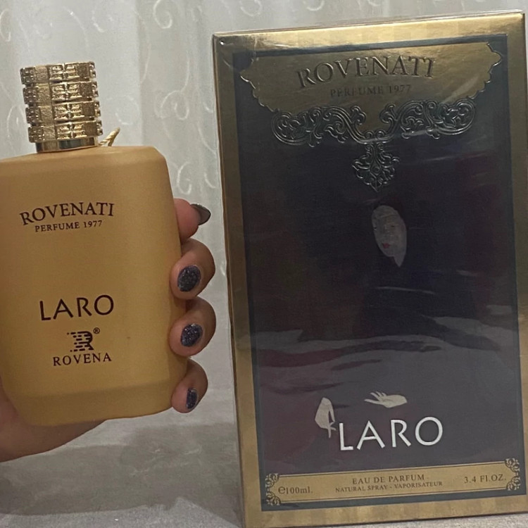 روونا مدل رووناتی لارو مشابه رایحه کازوماراتی لیرا می باشد. عطر ادکلن لارا عطری است گرم و شیرین. با توجه به رایحه ی گرم و شیرین این محصول از آن میتوان در چهار فصل سال و در درازای شبانه روز استفاده ی مدام داشت. این عطر زنانه عطری که در ابتدا با شیرینی دلچسب و خوشمزه ی وانیل کار خود را آغاز کرده و با شدت به سمت ملایمت رایحه ی گلها رفته و کم کم ماندگاری بیشتری به خود می گیرد.